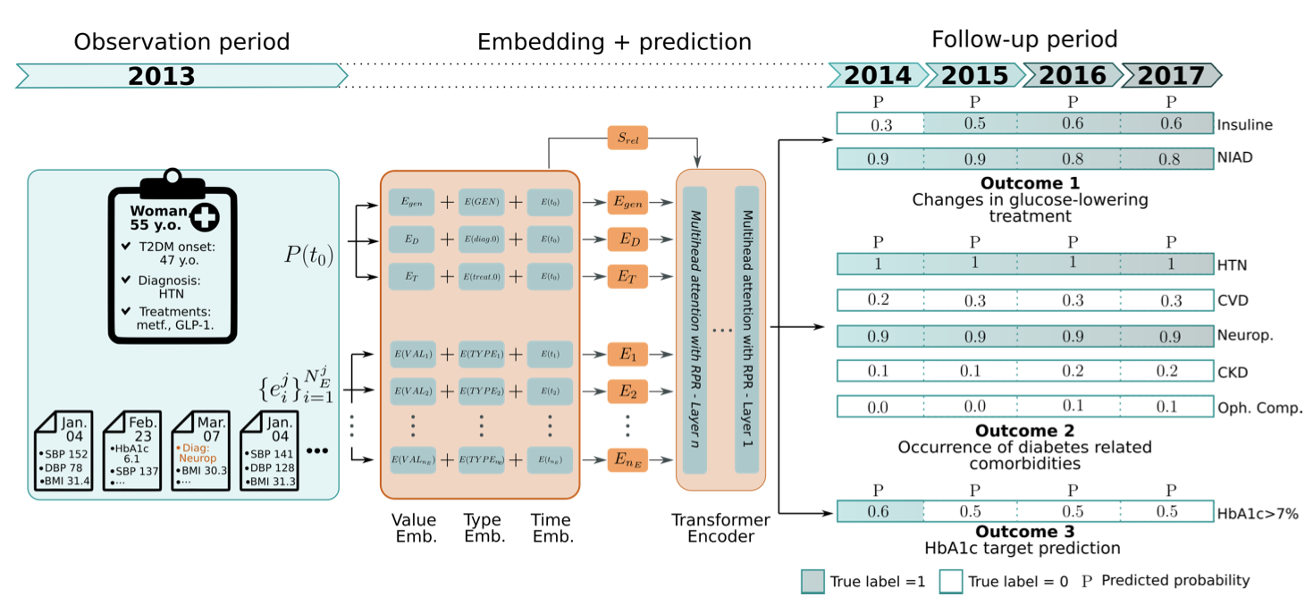 Our paper A Deep Attention-Based Encoder for the Prediction of Type 2 Diabetes Longitudinal Outcomes from Routinely Collected Health Care Data, to be published on the Expert Systems With Applications Journal, introduces DARE, a novel deep learning model designed to enhance the management of Type 2 Diabetes Mellitus (T2DM)1.